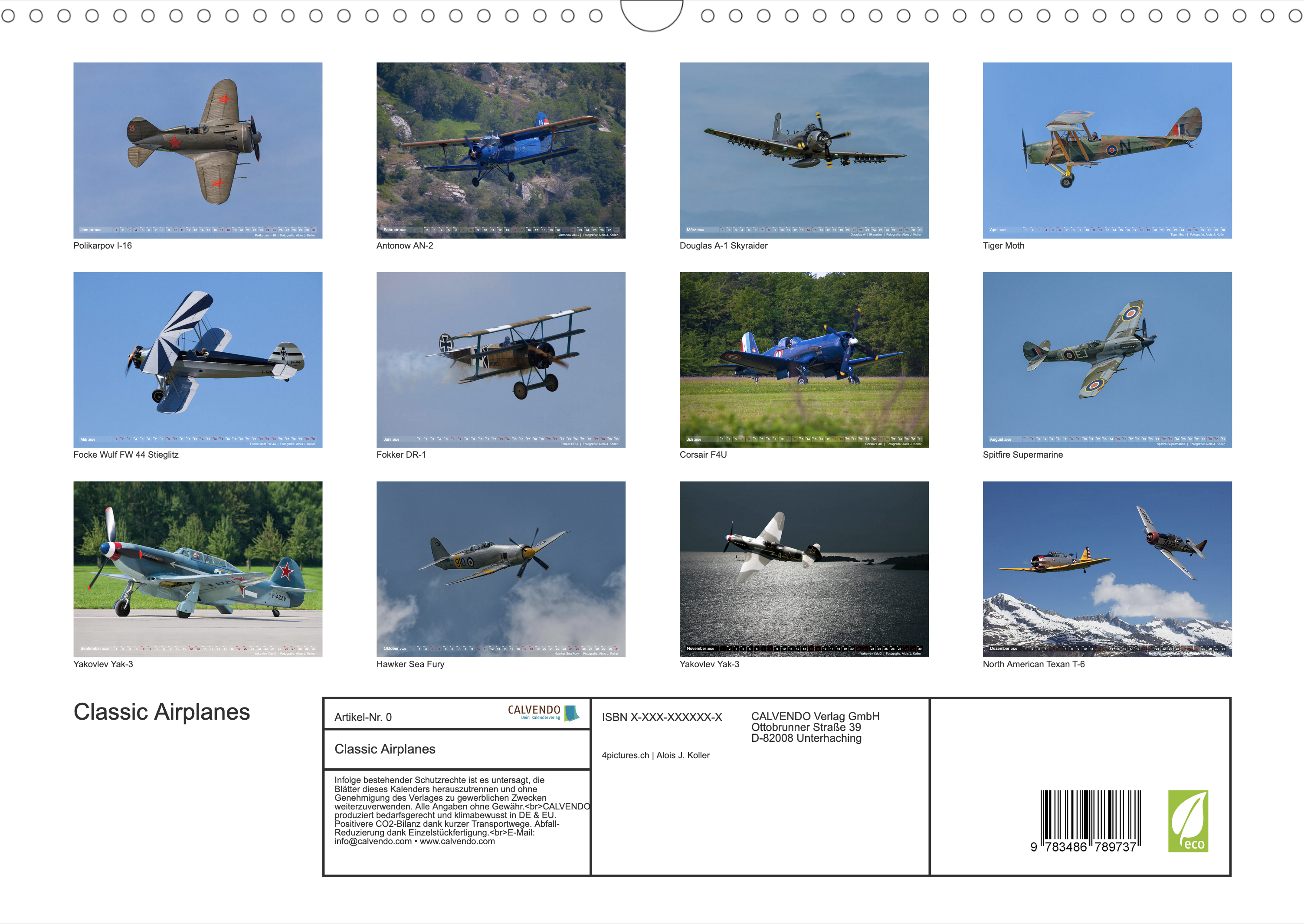 Fotokalender "Classic Airplanes" 2026 > Calvendo Bestseller